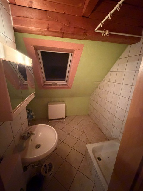 Der insgesamt modernisierungsbedürftige Zustand eröffnet Käufern die Chance, das Haus Schritt für Schritt nach eigenen Vorstellungen zu sanieren und ein sehr individuelles Zuhause zu schaffen. Positiv hervorzuheben ist das Krüppelwalmdach, das 1991 erneuert wurde, sowie ein nostalgischer Kohlenkeller, der dem Gebäude zusätzlichen Charme verleiht. In Teilbereichen besteht insbesondere im Hinblick auf Feuchtigkeit Renovierungsbedarf, was bei der Planung der Modernisierung berücksichtigt werden sollte.